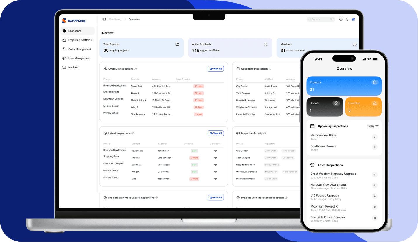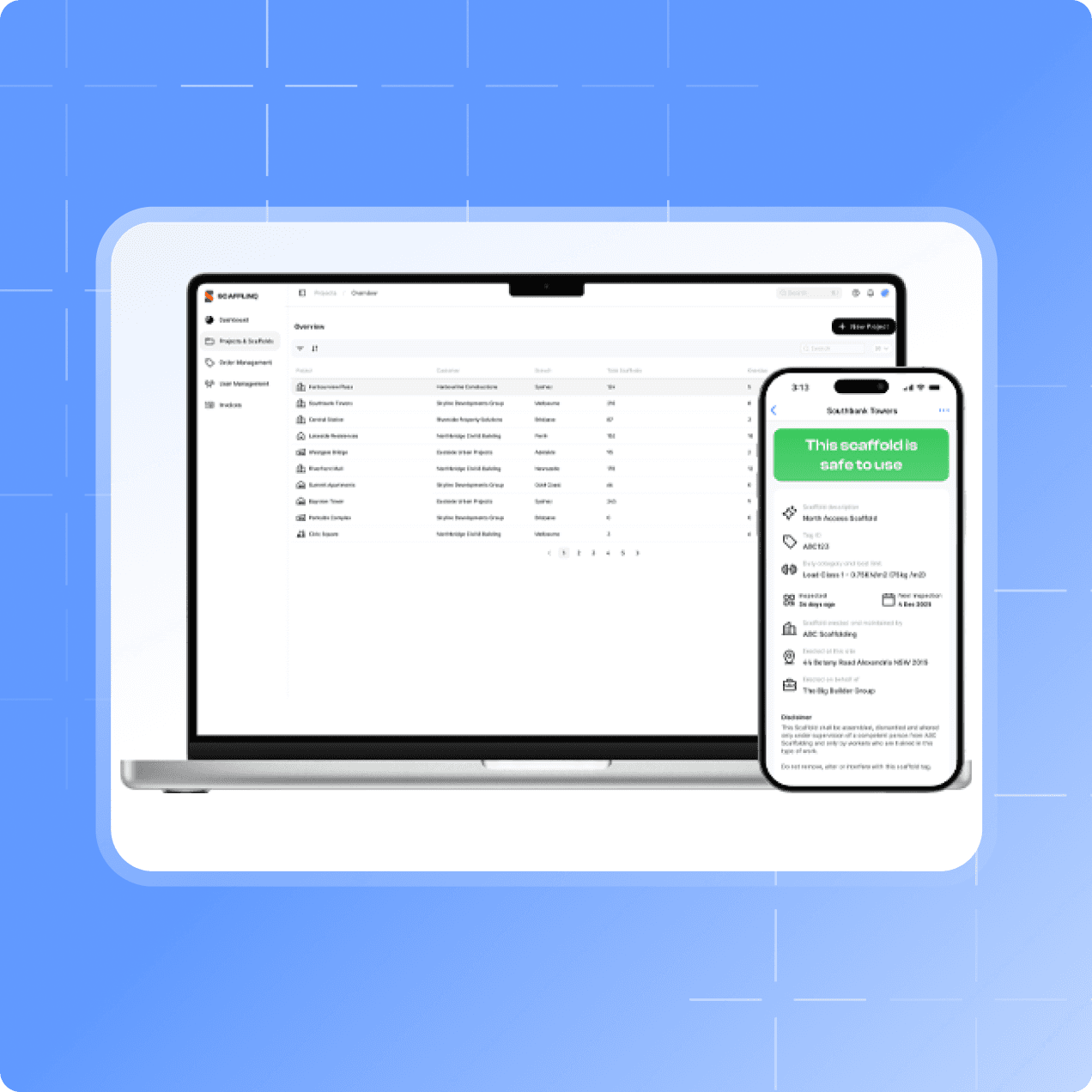 From a single dashboard, oversee every scaffold, every site, and every inspection.