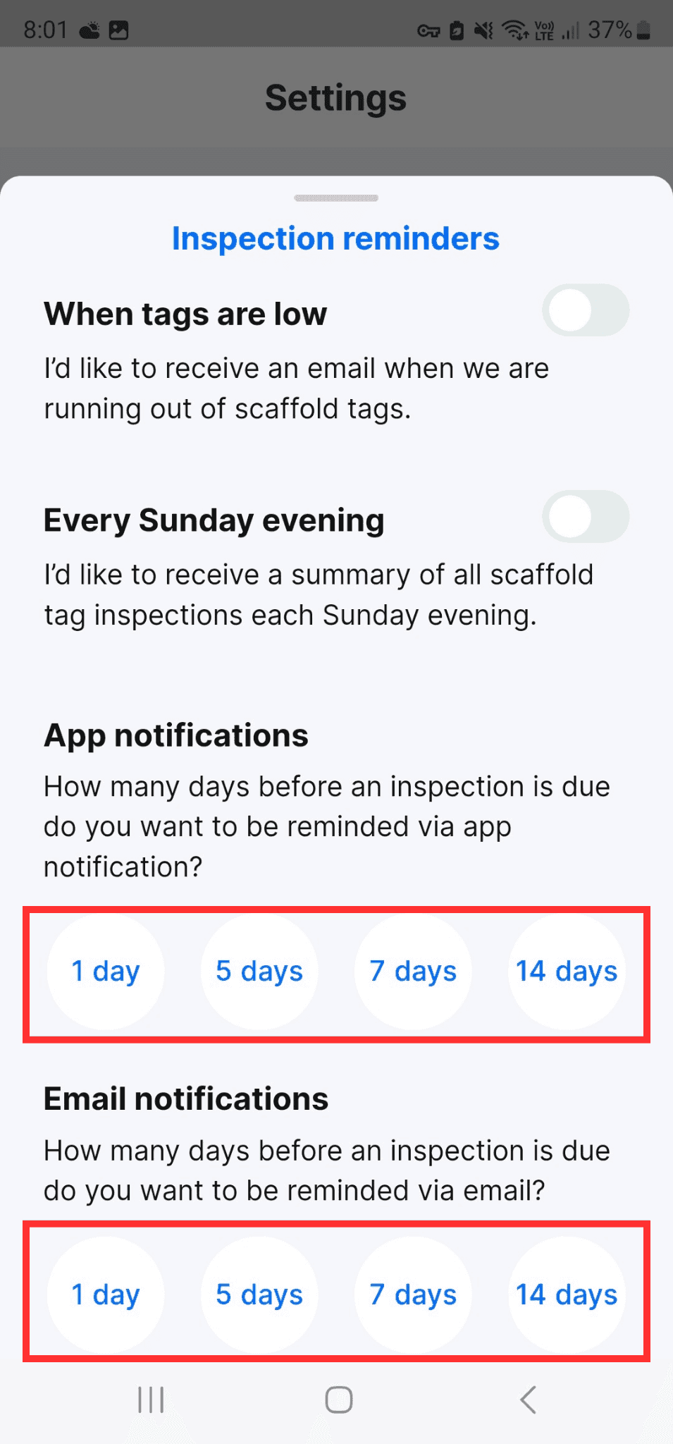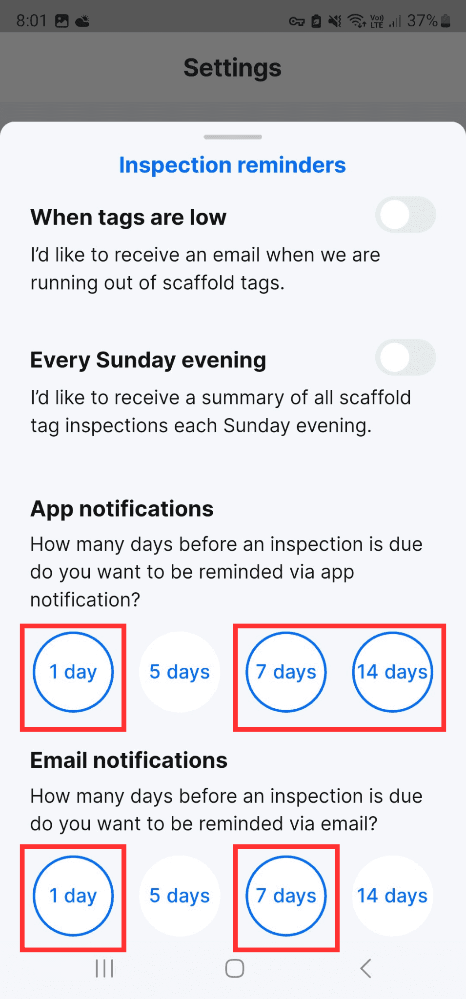 Choose how many days before your upcoming inspection you want to get a reminder.