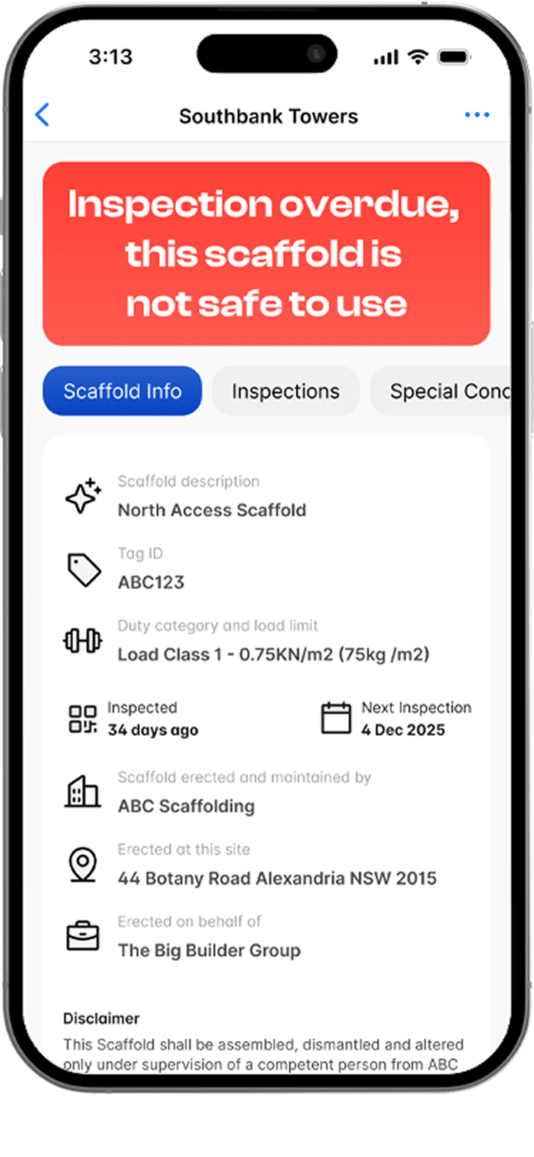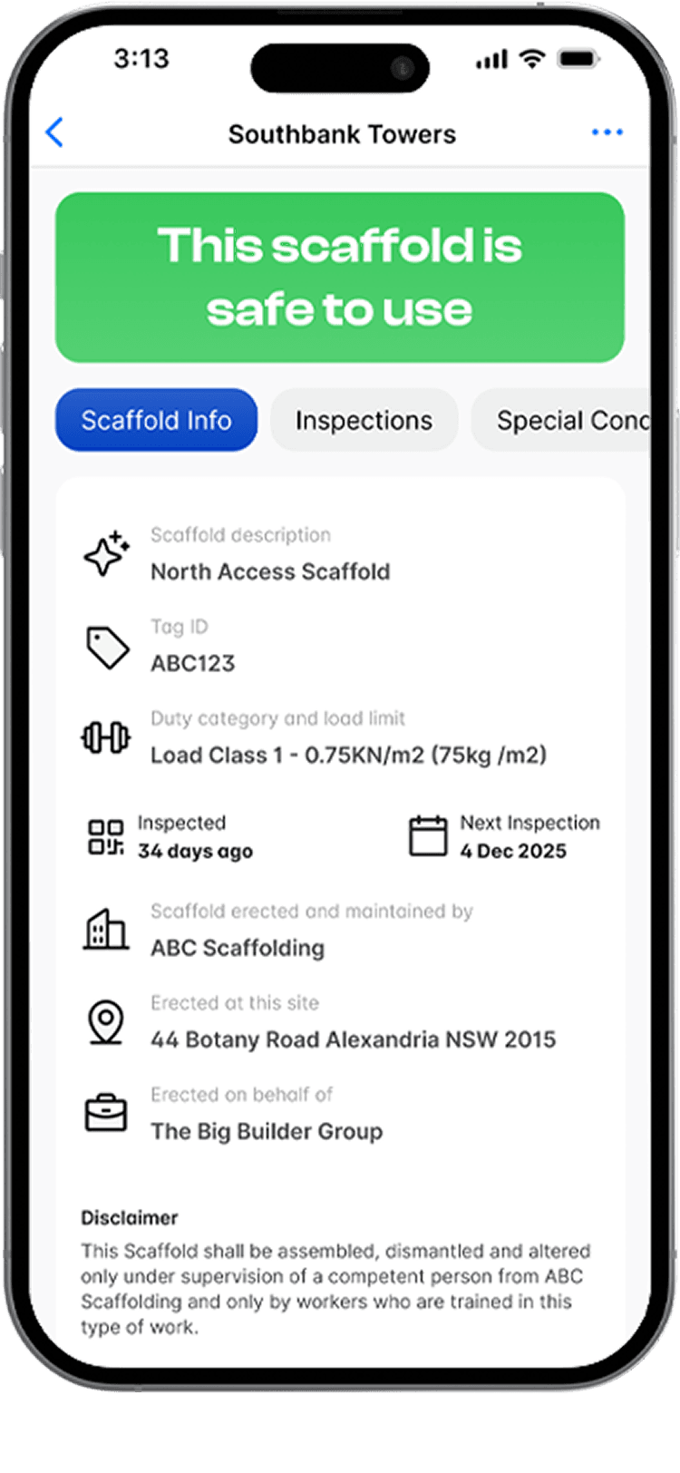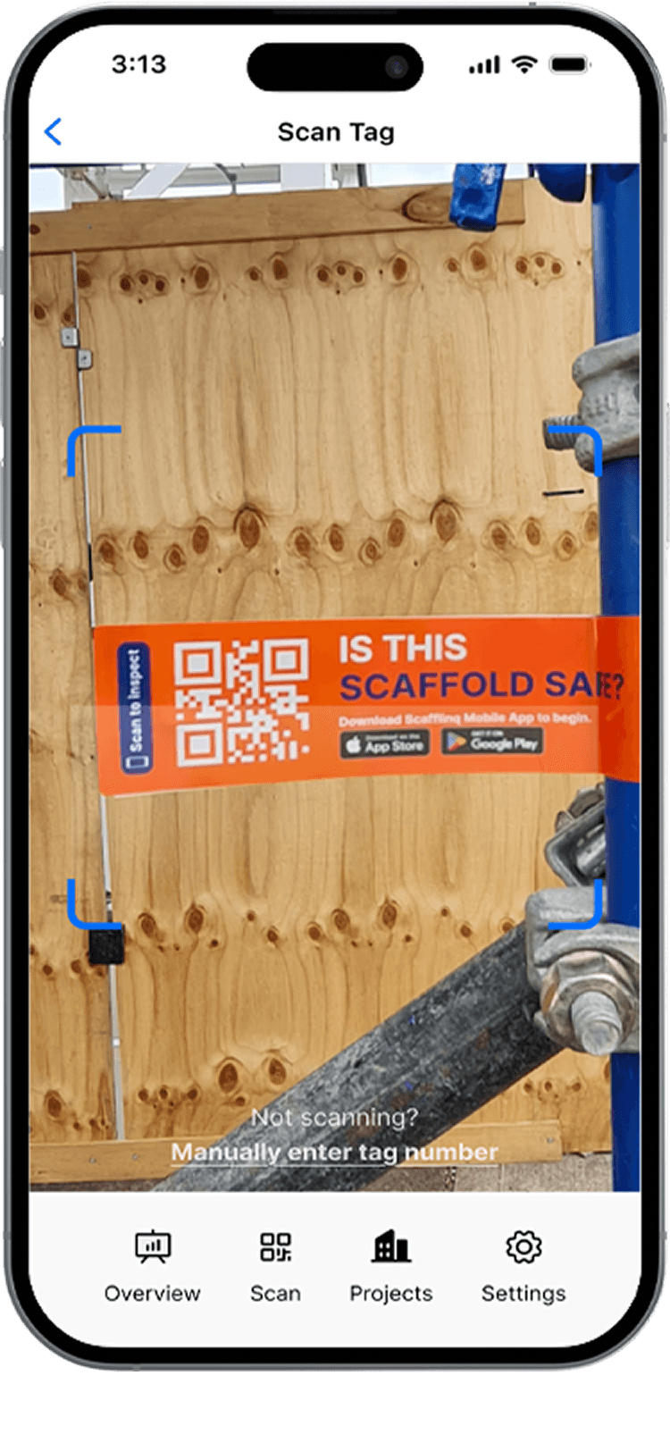 Contractor attaches a unique QR Scafftag to each scaffold so anyone can identify it instantly.